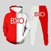 Conjunto de Sudadera con capucha y pantalones para hombre, chándal con estampado de costuras en negro y rojo, ropa de marca de moda, otoño, 4XL, novedad de 2021