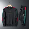 Conjunto de pantalones deportivos para hombre, chándal de dos piezas de manga larga con cuello redondo, bordado, elástico, informal, novedad