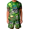 Conjunto de pantalones cortos informales para hombre, Camiseta con estampado de calavera verde, traje de 2 piezas, chándal deportivo a la moda, 5XL, novedad de verano 2021