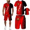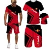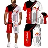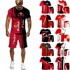 Conjunto de ropa deportiva para hombre, camiseta y pantalones cortos con estampado 3D, chándal con cuello en V, traje de manga corta, verano, 2021