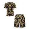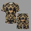 Conjunto de dos piezas de estilo Retro clásico para hombre, camiseta de manga corta con patrón favorable y pantalones cortos, conjuntos informales que combinan con todo, verano