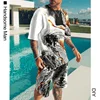 Conjunto de camiseta 3D para hombre, ropa de patrón exquisito, pantalones cortos de manga corta informales para exteriores, 2 piezas, moda nueva