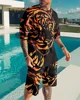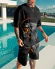 Conjunto de ropa deportiva para hombre, camiseta y pantalones cortos con estampado 3D del Rey León, chándal de manga corta con cuello redondo, Verano