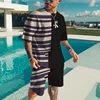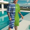 Camiseta con cuello redondo de gran tamaño para hombre, moda urbana, Hip Hop, tendencia de playa, traje deportivo de 2 piezas de manga corta para jóvenes