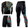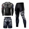 Chándal de compresión para hombre, ropa deportiva de entrenamiento, gimnasio, Top ajustado de manga larga y Leggings de cintura, 2/3 piezas