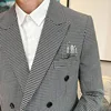 Conjunto de traje ajustado para hombre, chaqueta de lujo de alta calidad, traje de dos piezas, negro y blanco, Otoño, novedad