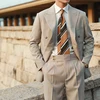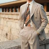 Traje a rayas para hombre, traje versátil de moda para caballero, doble botonadura, abrigo de solapa italiano, esmoquin Formal para novio de boda y negocios