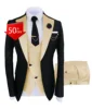 Traje Formal de negocios para hombre, esmoquin para boda, traje de novio, Blazer + Pantalones + chaleco, color champán y Beige, 3 piezas