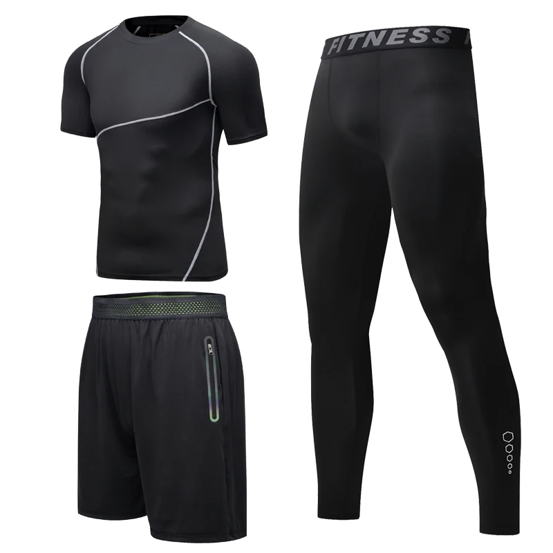 Conjunto deportivo para hombre, ropa deportiva de secado rápido para correr, gimnasio, Fitness, entrenamiento, 3 piezas