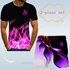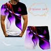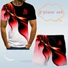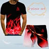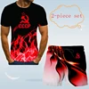 Ropa deportiva con estampado de llama para hombre, pantalones cortos de manga corta, conjunto de 2 piezas de elementos de humo, tendencia de moda de verano