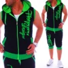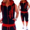 Chándal informal de 2 piezas para hombre, Conjunto de sudadera sin mangas con capucha y pantalones cortos, chándal con letras estampadas, ropa de verano