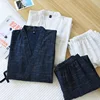 Pijama Kimono japonés para hombre, ropa de dormir de algodón, albornoz, conjunto de dos piezas, con cuello en V y rayas, para primavera
