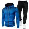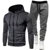 Chándal informal con cremallera para hombre, conjunto de Sudadera con capucha y pantalones, ropa deportiva para correr