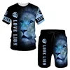 Camiseta de manga corta de 2 piezas para hombre, camisa grande de poliéster informal con estampado 3D del Rey León, tendencia de moda, Verano