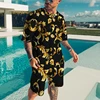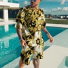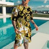 Traje de dos piezas de verano para hombre, Camiseta deportiva con patrón de estatua dorada, adecuada para jóvenes, adultos, ocio callejero de gran tamaño
