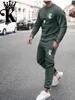 Traje deportivo informal de manga larga con cuello redondo para hombre, Conjunto de camiseta con estampado artístico 3D, superventas, primavera y otoño, 2021