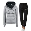 Sudadera con capucha para hombre y mujer, Conjunto de sudadera de manga larga con estampado de corazón, pantalones de chándal Unisex, primavera y otoño