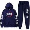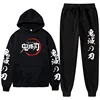 Sudadera con capucha de Demon Slayer para hombre y mujer, suéter de manga larga con estampado gráfico de Anime, conjunto de pantalones con Cordones elásticos de moda informal, ropa Unisex