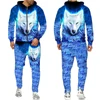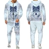 Sudadera con capucha y cremallera para hombre y mujer, chándal con estampado 3D de Lobo, holgado, para parejas y pantalones, ropa de calle informal de Hip Hop