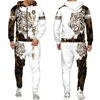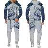 Chándal con estampado 3d de León y Lobo para hombre, conjunto de chándal informal con capucha y pantalones, ropa de moda para Otoño e Invierno