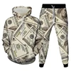 Conjunto de chándal con estampado 3D de dólares para hombre, Sudadera con capucha y pantalones, exquisitamente realista, con patrón de dinero, conjunto de moda