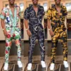 Conjunto de camisa con estampado para hombre, ropa informal de dos piezas, verano, 2021