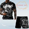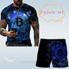 Chándal con estampado de Bitcoin en 3D para hombre, ropa de gran tamaño, camiseta, pantalones cortos, ropa deportiva, traje de moda