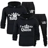 Sudadera con capucha y pantalones para parejas, moda coreana, Sudadera con capucha de rey y reina, His y Her, trajes