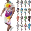 Conjunto de camiseta de manga corta con estampado de grafiti 3D para hombre, chándal de moda, transpirable, 2 piezas, cuello redondo, Verano