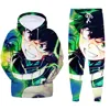 My Hero Academia Sudadera con capucha y pantalones de chándal para Cosplay, ropa deportiva de 2 piezas, 3D, chándal