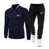 Chándal de marca para hombre, conjunto de chándal de algodón con cremallera, chaqueta, pantalones de chándal, chándal deportivo para gimnasio, 2 piezas