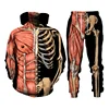 Conjunto de jersey con capucha para hombre, ropa deportiva con estampado de huesos humanos en 3D, chándal de manga larga, Otoño e Invierno