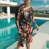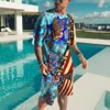 Conjunto de 2 piezas formado por camiseta y pantalón corto para hombre, ropa masculina informal, con estampado de la bandera nacional en 3D, para verano