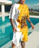 Conjunto de camiseta y pantalones cortos con estampado 3D para hombre, chándal con cuello redondo, ropa deportiva de manga corta, de verano, nuevo