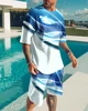 Traje de camiseta para hombre, ropa de calle de moda para nadar en la playa al aire libre, camiseta de gran tamaño con cuello redondo, pantalones cortos de 2 piezas, ropa deportiva