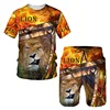 Camiseta con estampado y pantalones cortos 3D del Rey León para hombre, ropa deportiva de manga corta de gran tamaño, para correr y Fitness, Verano