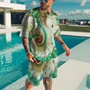Traje de camisa hawaiana estampada para hombre, camisa de manga corta a la moda, pantalones cortos de playa, conjunto informal de secado rápido de 2 piezas