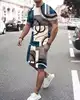 Traje de dos piezas de gran tamaño para hombre, camiseta Retro Harajuku 3D Digital de manga corta y pantalones cortos para jóvenes, ropa deportiva de moda de playa