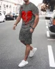 Traje deportivo para hombre, camiseta y pantalones cortos de entrenamiento, conjunto de 2 piezas de letras Sky 3D, ropa de manga corta con estampado creativo para exteriores