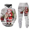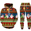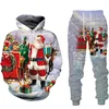 Sudadera con capucha para hombre y mujer, traje con estampado 3D de Papá Noel, muñeco de nieve, jerséis y pantalones, chándal de 2 piezas, regalo de Navidad
