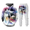 Conjunto de Sudadera con capucha y pantalones para hombre, chándal informal de manga larga con estampado 3D de Animal Horse, Unisex