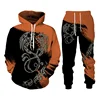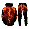Conjunto de Sudadera con capucha y pantalones para hombre, chándal informal con estampado de Fénix en 3D, 2 piezas, Unisex