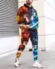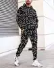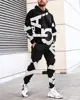 Conjunto de dos piezas para hombre, Sudadera con capucha y pantalones de chándal, chándal deportivo de gran tamaño, ropa de calle informal con estampado