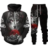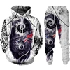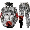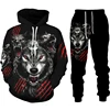 Conjunto de Sudadera con capucha y pantalones para hombre, chándal informal con estampado 3d de Lobo, ropa de moda, Otoño e Invierno