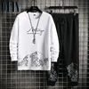 OEIN Conjunto de Sudadera con capucha y pantalones para hombre, chándal informal holgado, ropa de calle de Hip Hop, de 2 piezas traje deportivo, otoño, 2021