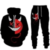 Sudadera con capucha y estampado de Demon Smile para hombre, ropa deportiva informal para trotar, Sudadera con capucha y pantalones, 2 piezas