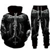 Sudadera con capucha y estampado de calavera en 3D para hombre, chándal moderno con cremallera, conjunto de 2 piezas, Otoño e Invierno