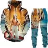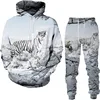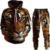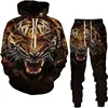 Suéter con capucha para hombre, conjunto de ropa deportiva con estampado de tigre en 3D, chándal de manga larga, traje de otoño e invierno