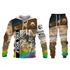 Suéter con capucha para hombre, conjunto de ropa deportiva masculina de manga larga, chándal con estampado de lobo ferótico en 3D, Otoño e Invierno
