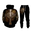 Conjunto de ropa deportiva para hombre, suéter con capucha y estampado 3D de los guerreros vikingos, chándal de manga larga, Otoño e Invierno